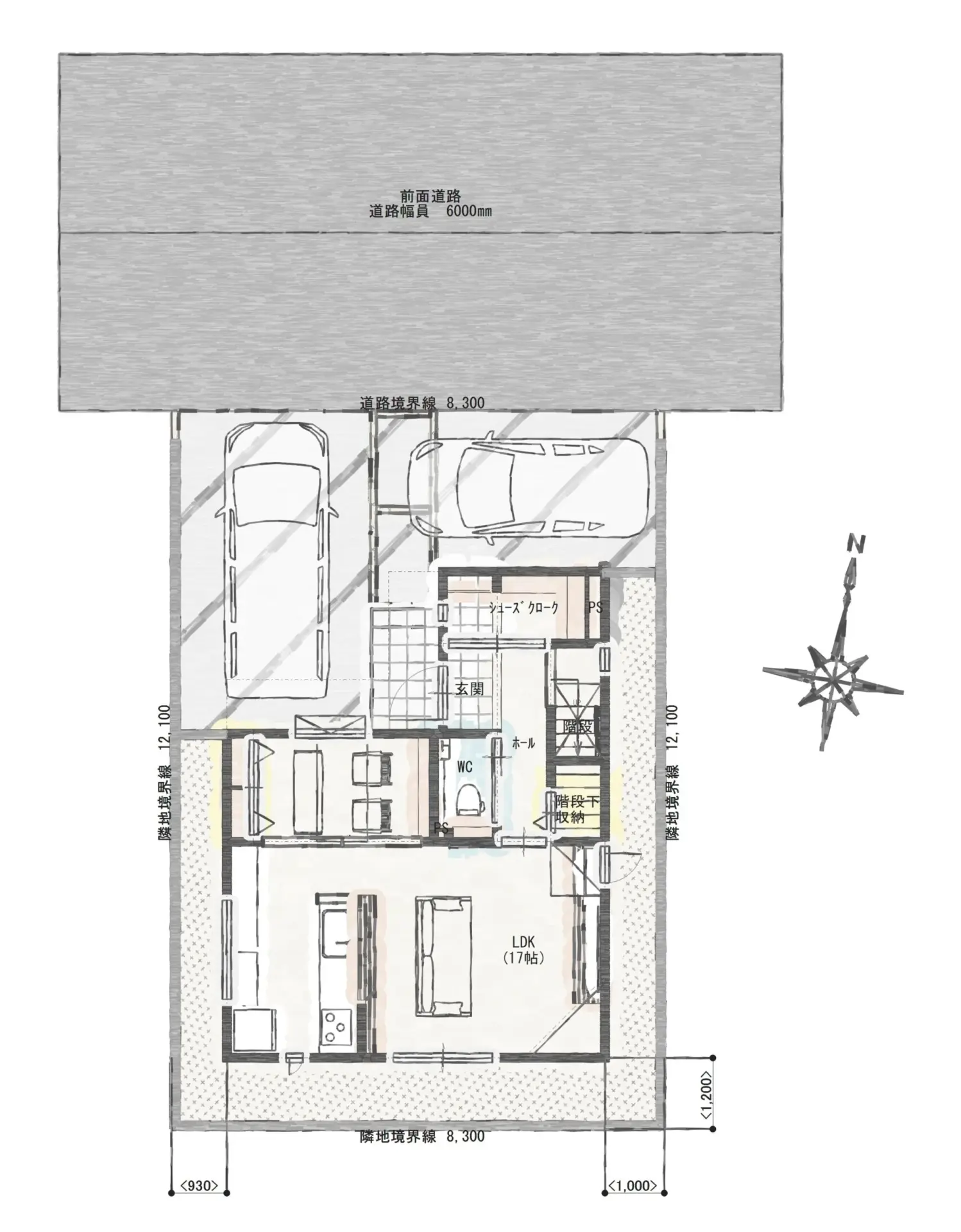 ダイニングには東西側にに収納&パントリーを配置