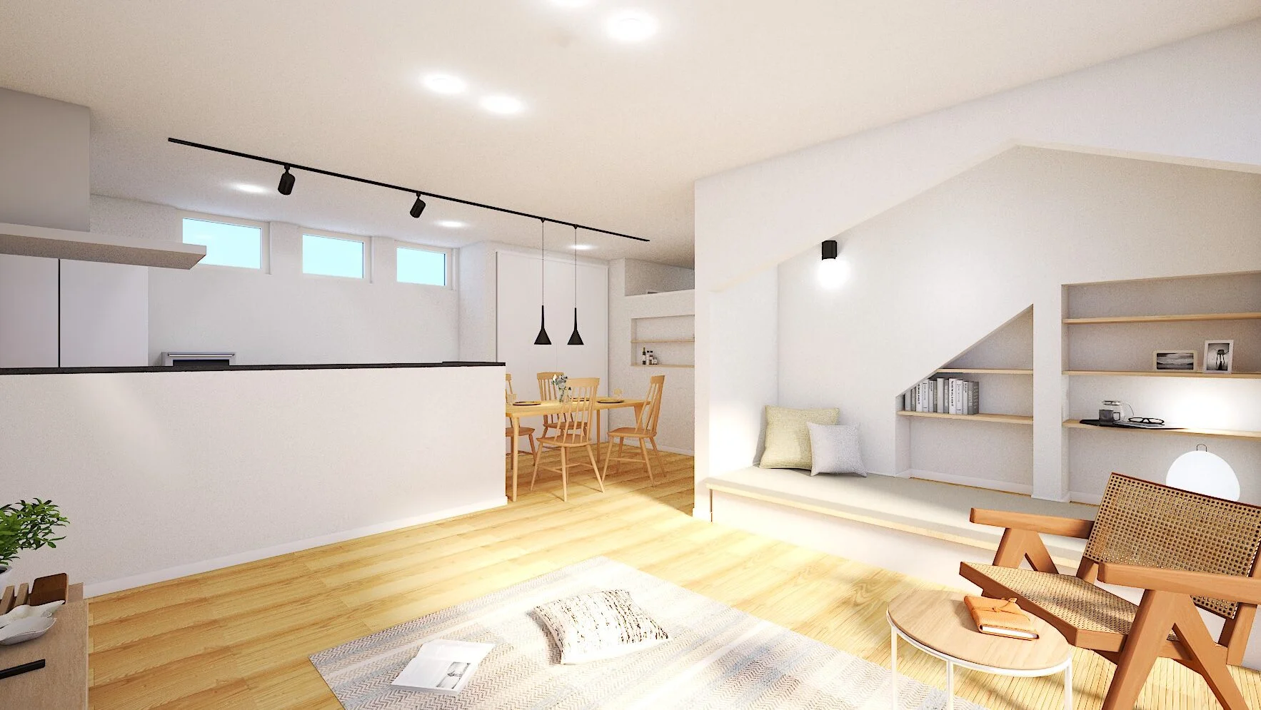 遊び心あるヌックソファと開放的なLDK、快適な動線が魅力のまちなかモデルハウス(南区戸頭)