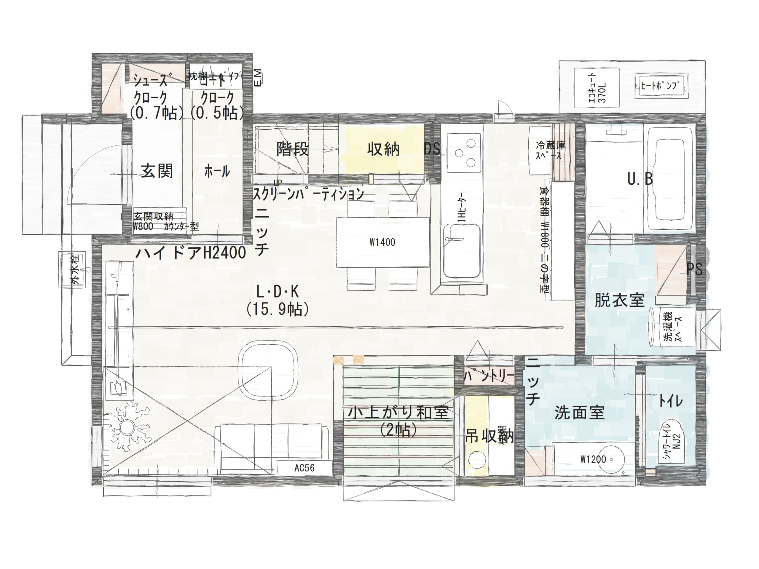 室内干しスペースを確保し、快適さと上質な暮らしを両立。