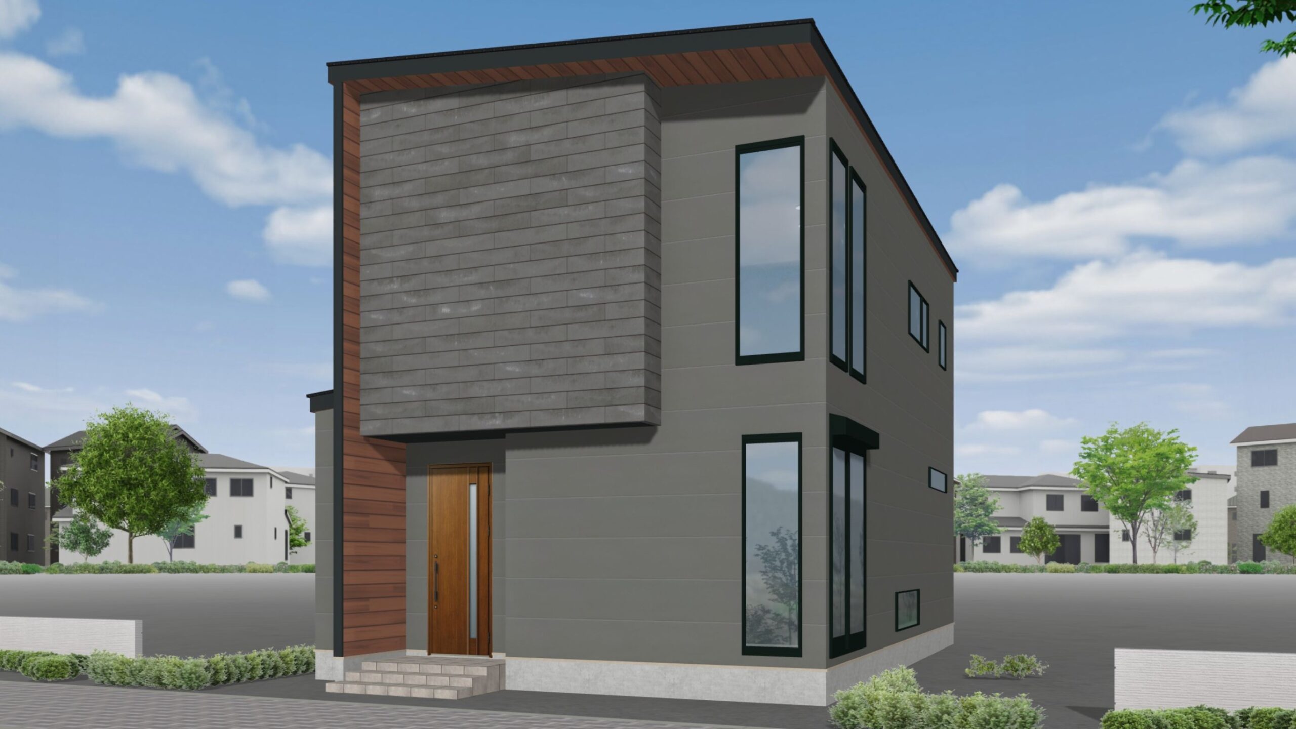 重厚感のあるグレー外壁と縦長窓が映える、モダンで洗練されたスタイリッシュハウス!(深谷市岡)
