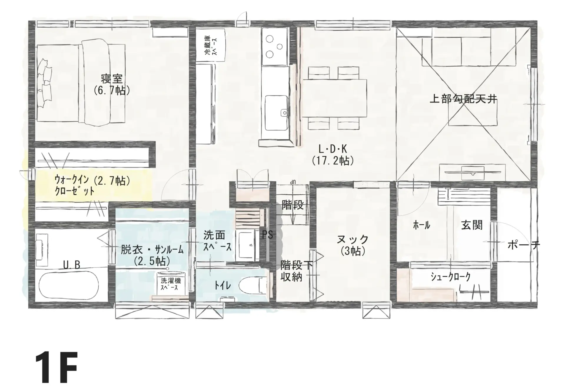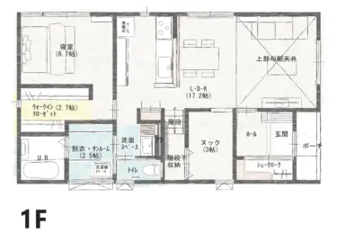 ご夫婦の寝室は1階に配置し、将来を見据えて生活がワンフロアで完結できる間取りに。
