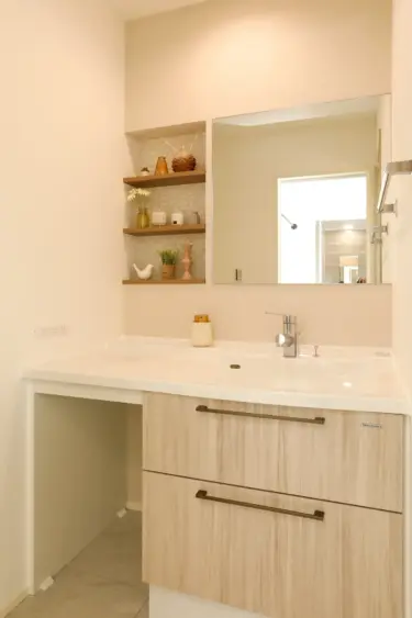 造作洗面や壁紙・建具のデザインにもこだわり、毎日を心地よく過ごせる工夫が随所に光ります🌟