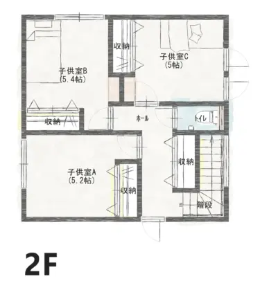 2階には3部屋を確保し、子ども部屋やゲストルームとして使える便利な空間をご用意しました!