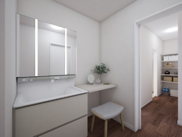 大容量の食品庫や、帰宅後すぐに手が洗える「ただいま動線」上の洗面スペースなど、日々の家事をラクにする工夫も満載🍳