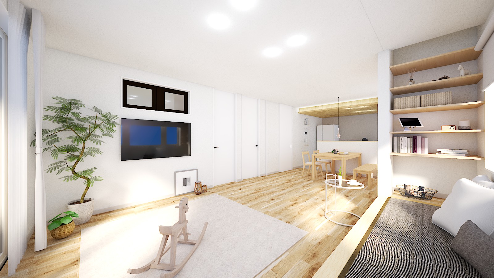 LDKには、ヌックベンチ・折下げ天井・ニッチなど、暮らしを彩る細やかなこだわりが満載🪴