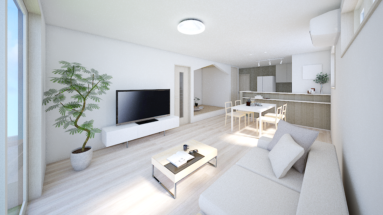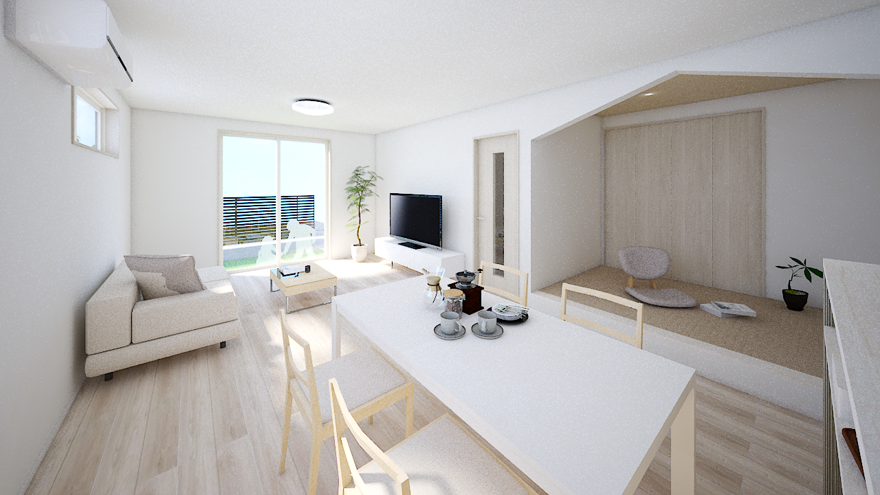 リビングに隣接した小上がりスペースは、開放的でありながらロールカーテンを下ろせば個室にも早変わり。