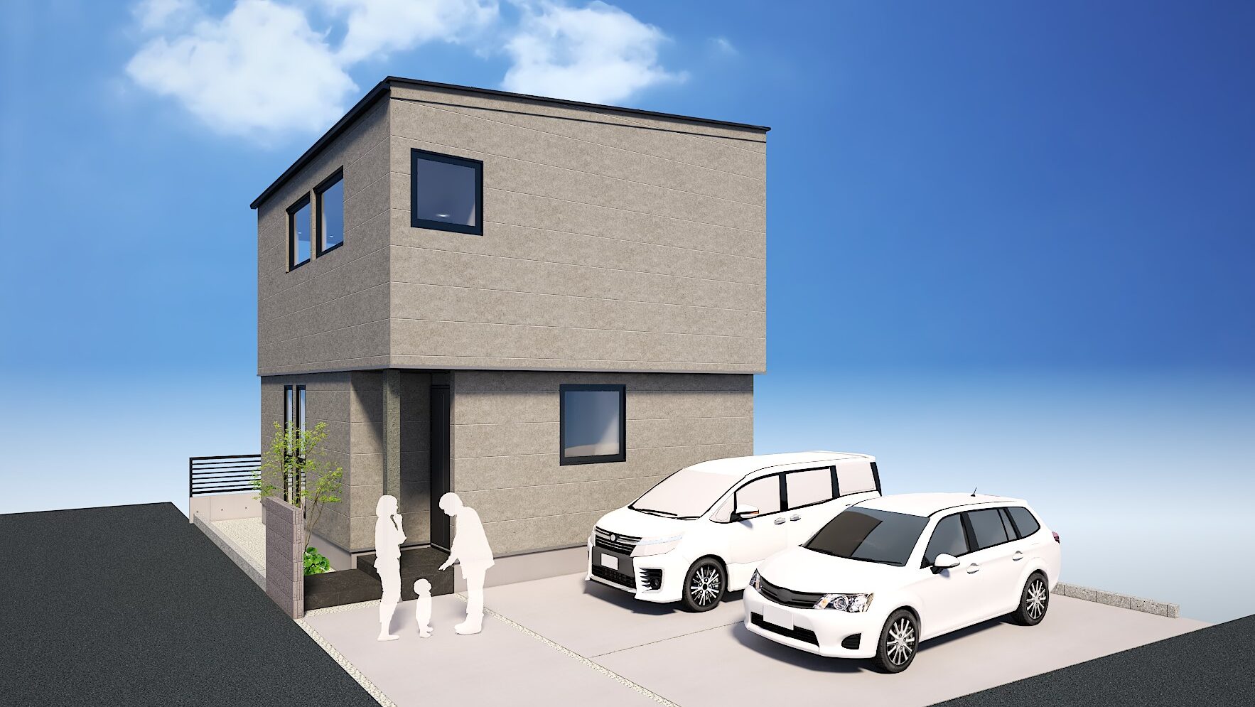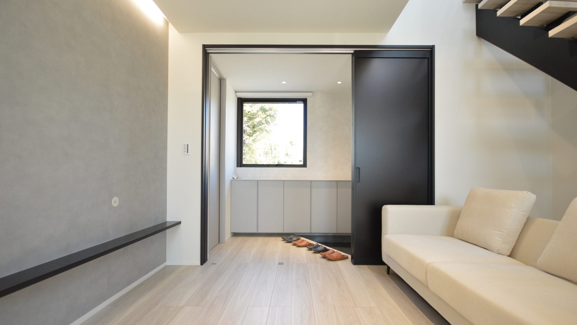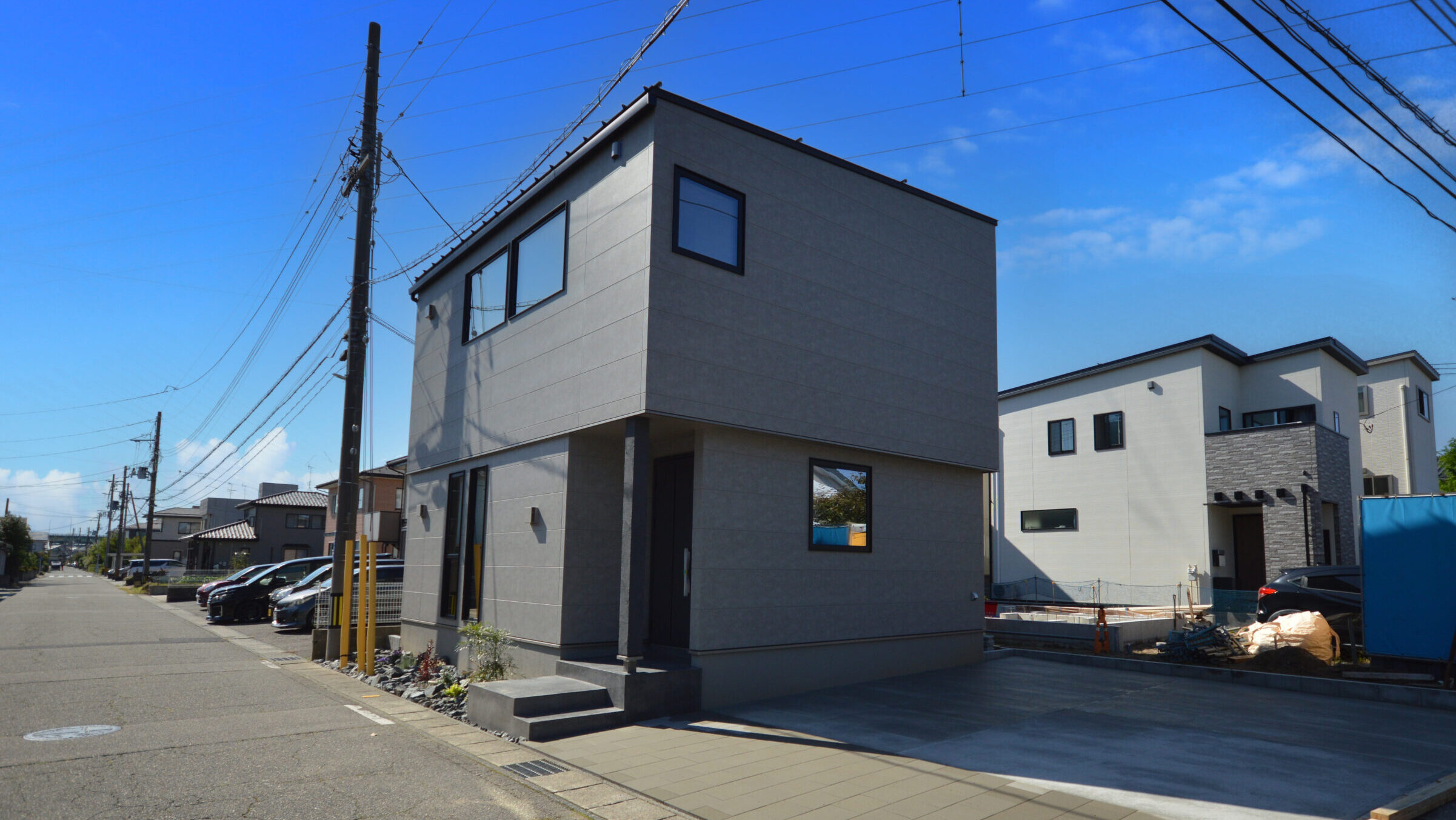 凹凸のあるザラッとした質感が映える外壁材で、上品かつモダンな印象に仕上げました。