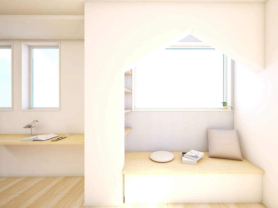 LDKには大きな窓から光が差し込むベンチスペースを設け、読書やくつろぎの時間を楽しめる特別な場所に✨