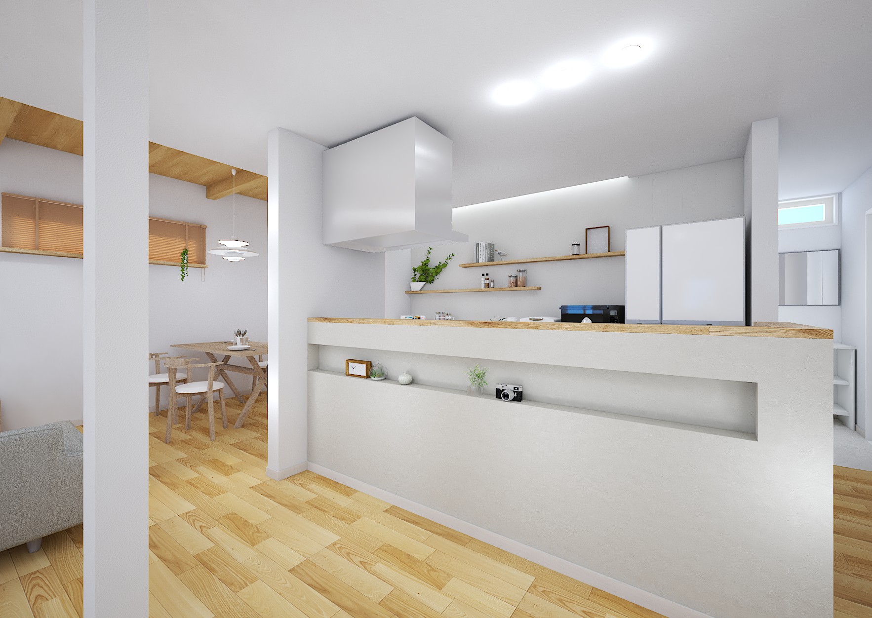 キッチンの回遊動線や間接照明付きの食器棚など、毎日の家事が快適になる工夫も満載。