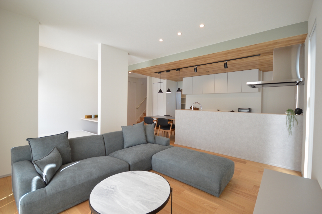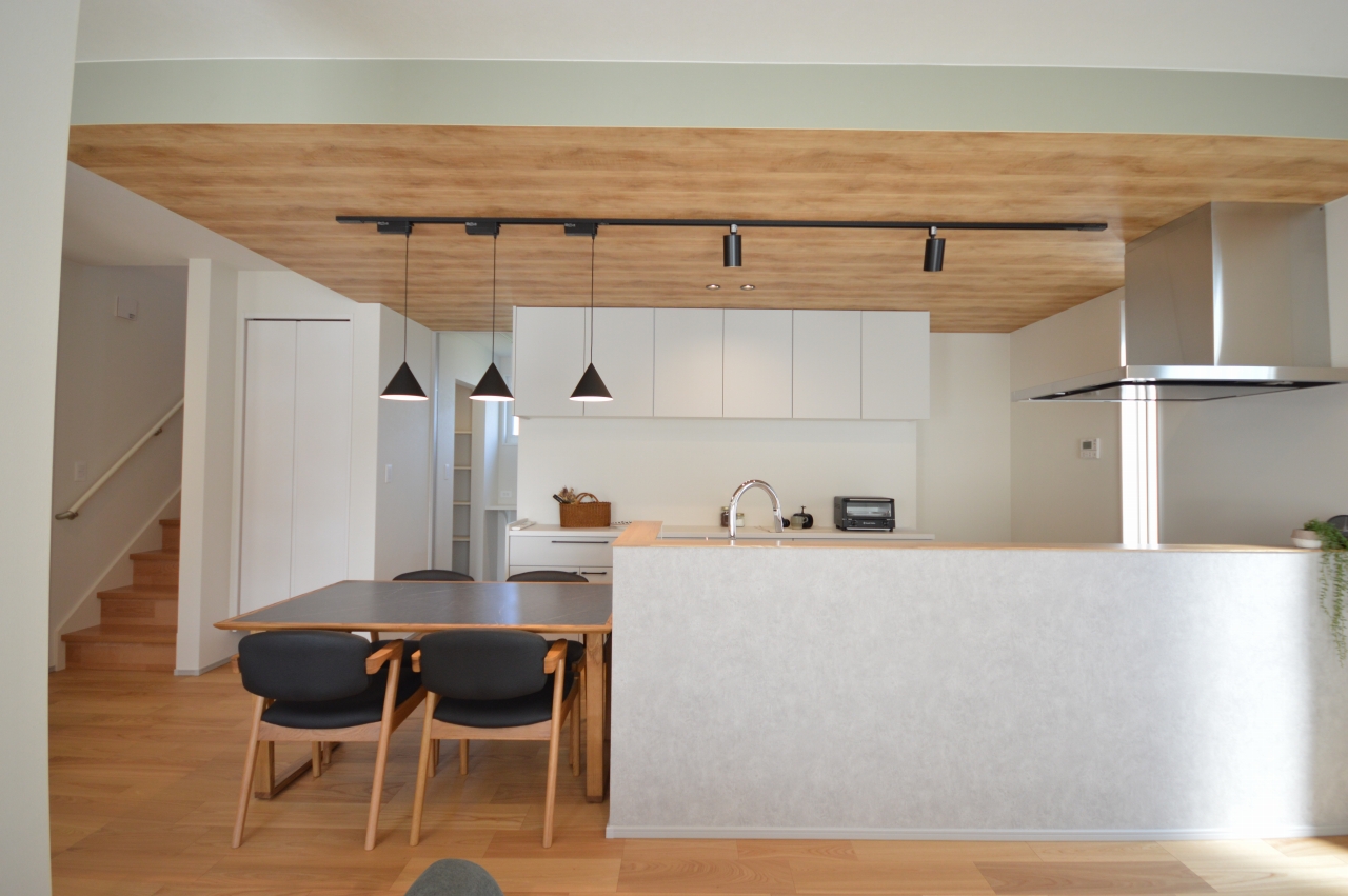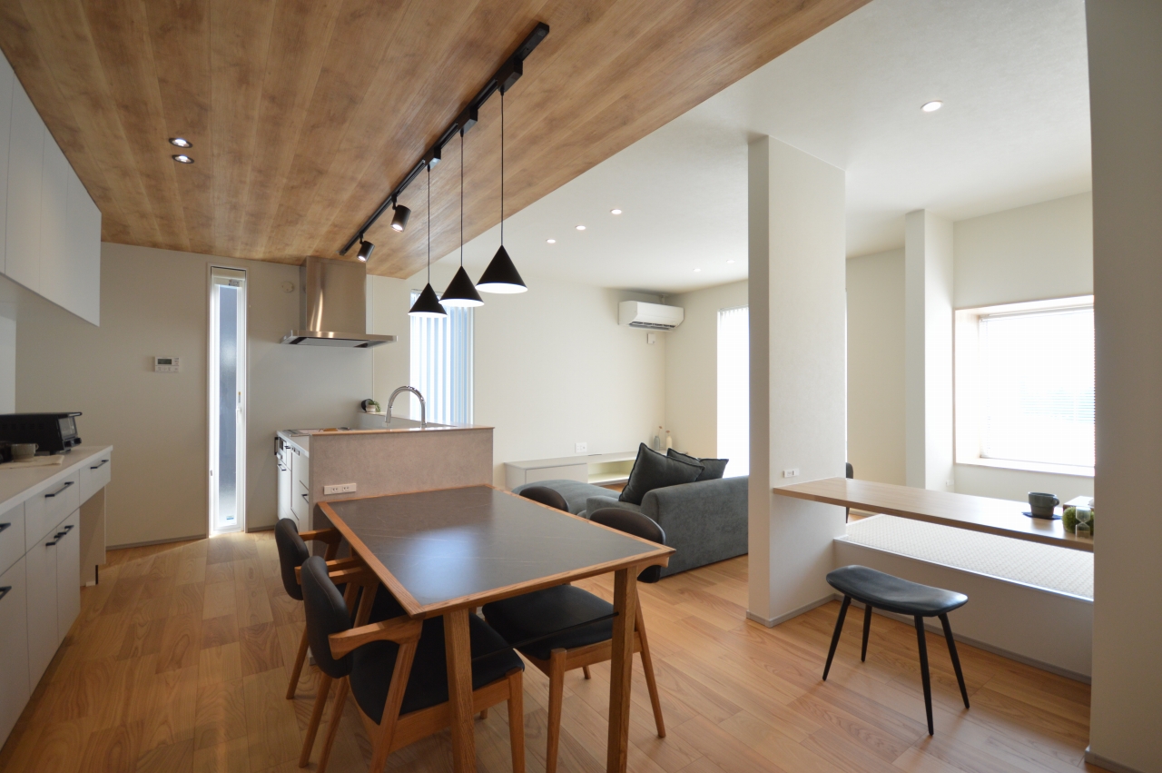 大空間のLDKに隣接して窓際ヌックと小上がりを計画しました。小上がりに座ってダイニングの家族ともお話ができます。