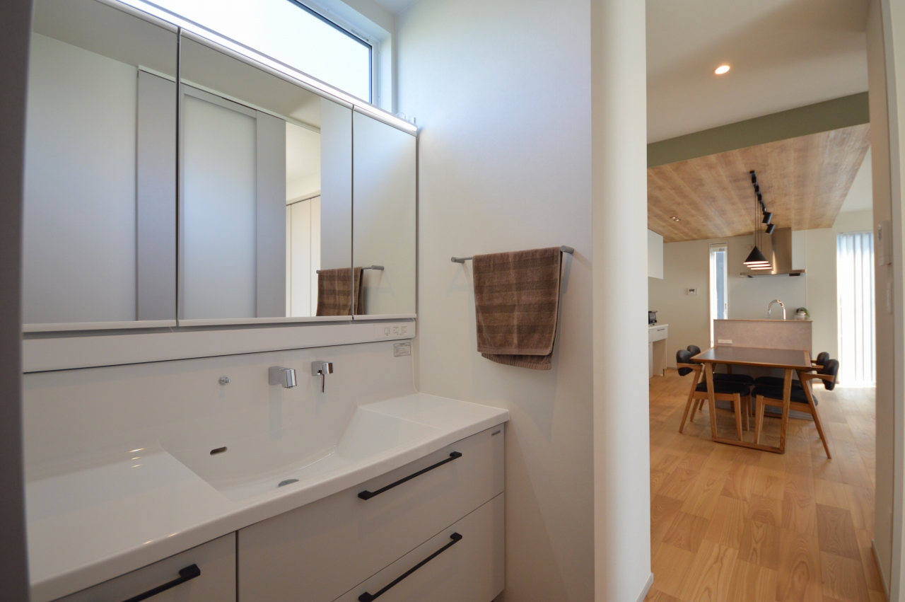 水回りもひとまとめにし、ファミリークロークもあるので家事が捗る間取り。