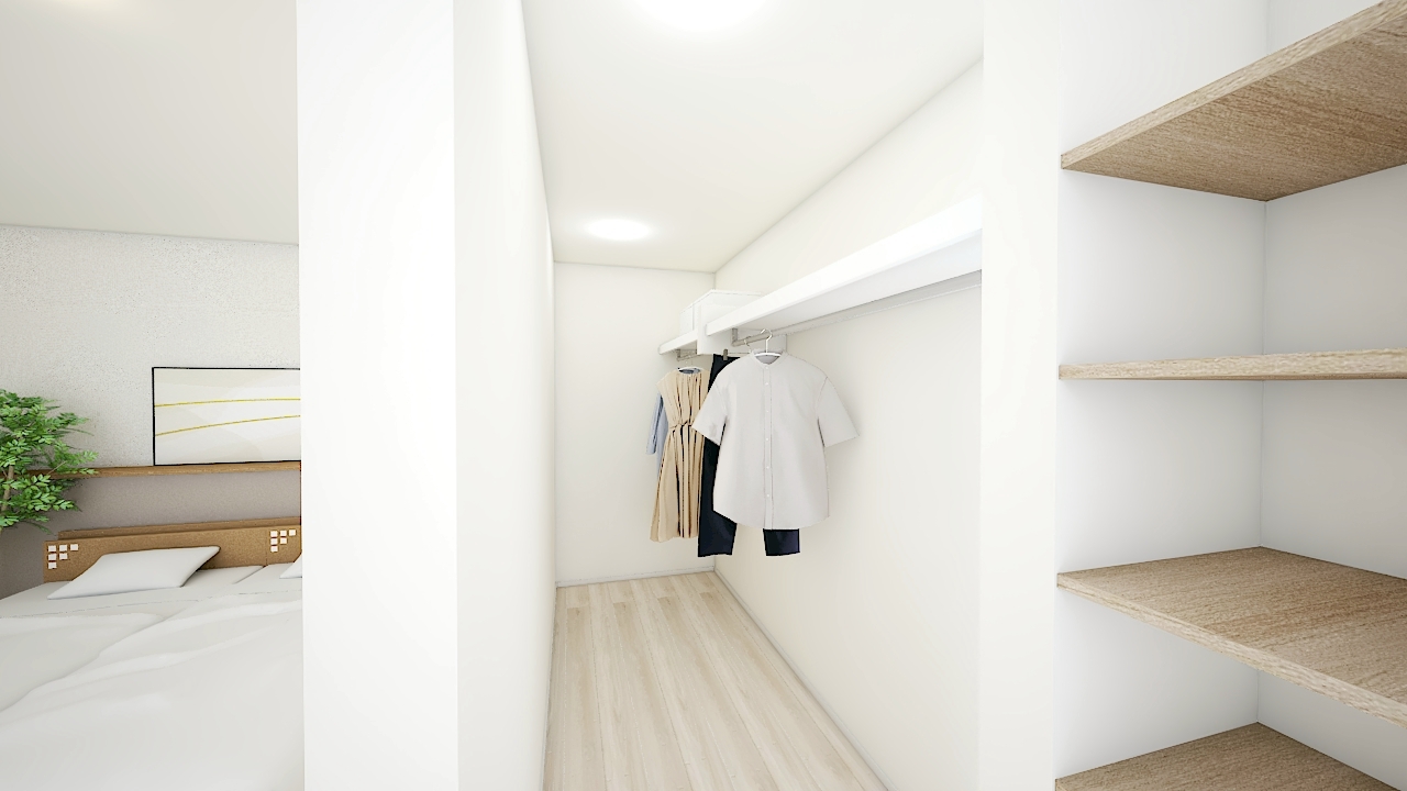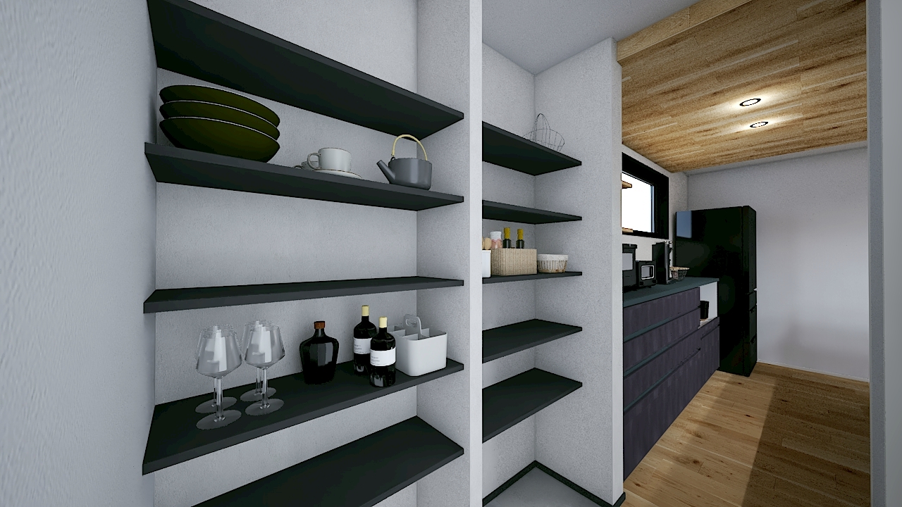 キッチン近くにはパントリー、さらに1階クローゼットを備え、