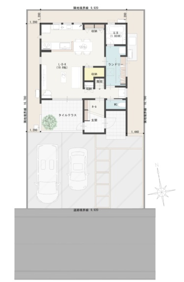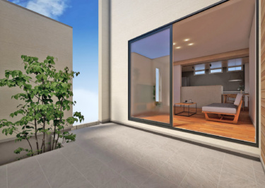 LDKの外には、壁で囲われたプライベートテラスを配置