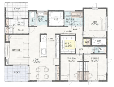 平屋なのにトイレが2ヶ所。住みやすさを考えたリアルサイズの平屋を特別公開します。