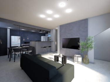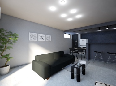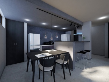1階のLDKは、ブラックの内観色が空間を引き締めるスタイリッシュな仕上がりに。