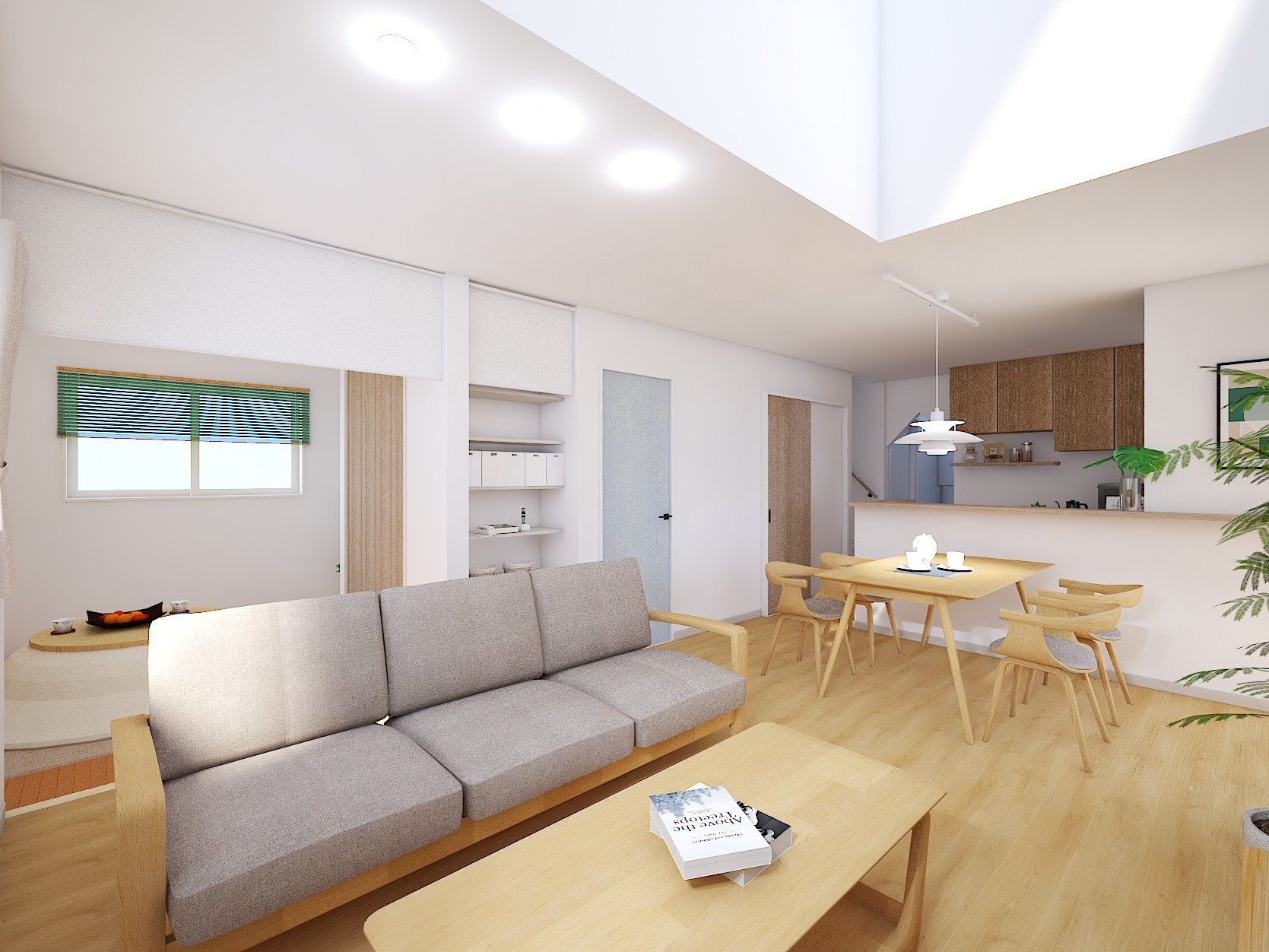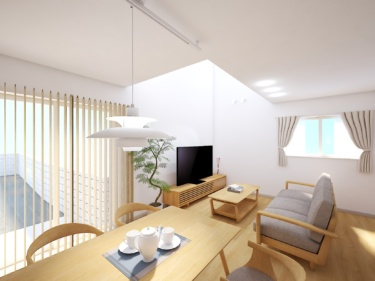 ・ストレートに配置されたLDKと大きな吹抜けは視線が抜けることで、より広々とした空間が広がります。
