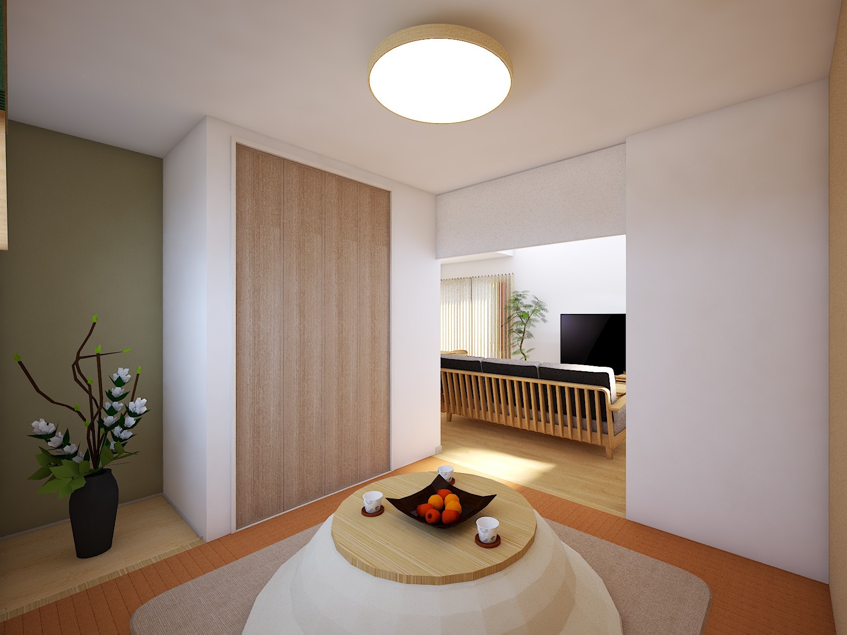 ・リビングに隣接した和室は客間や家族のくつろぎのスペースとして大活躍。