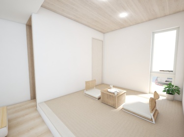 リビングから繋がる中庭は、外の視線を気にせず趣味を楽しめる開放的な空間!リビング横の小上がりは、キッズスペースや客間として多目的に使えます。家族の成長に合わせて自由に暮らしを彩れる、魅力的なお住まいです。