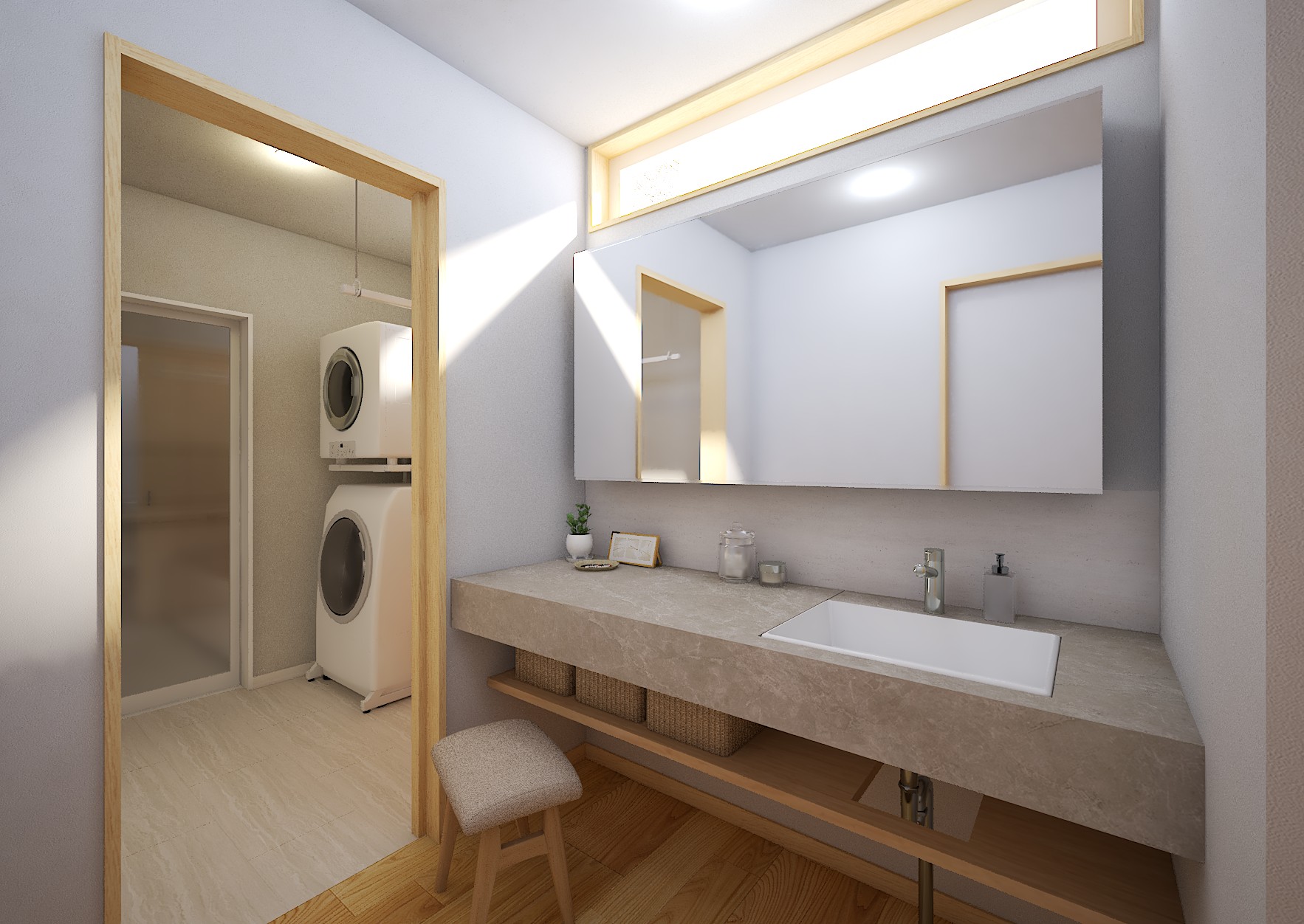 02大型パントリーやランドリールーム、まとまった水廻り空間など、家事ラクな家づくりの参考に!