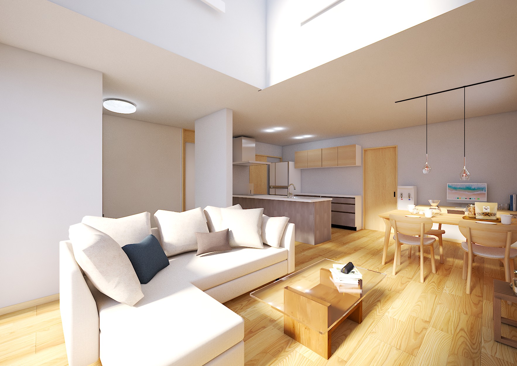 吹き抜けからたっぷりの自然光が差し込む、家族みんなが自然とリビングに集まりたくなるお住まいです!