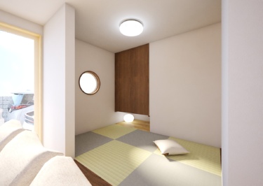 家族が繋がる、丸窓のある家