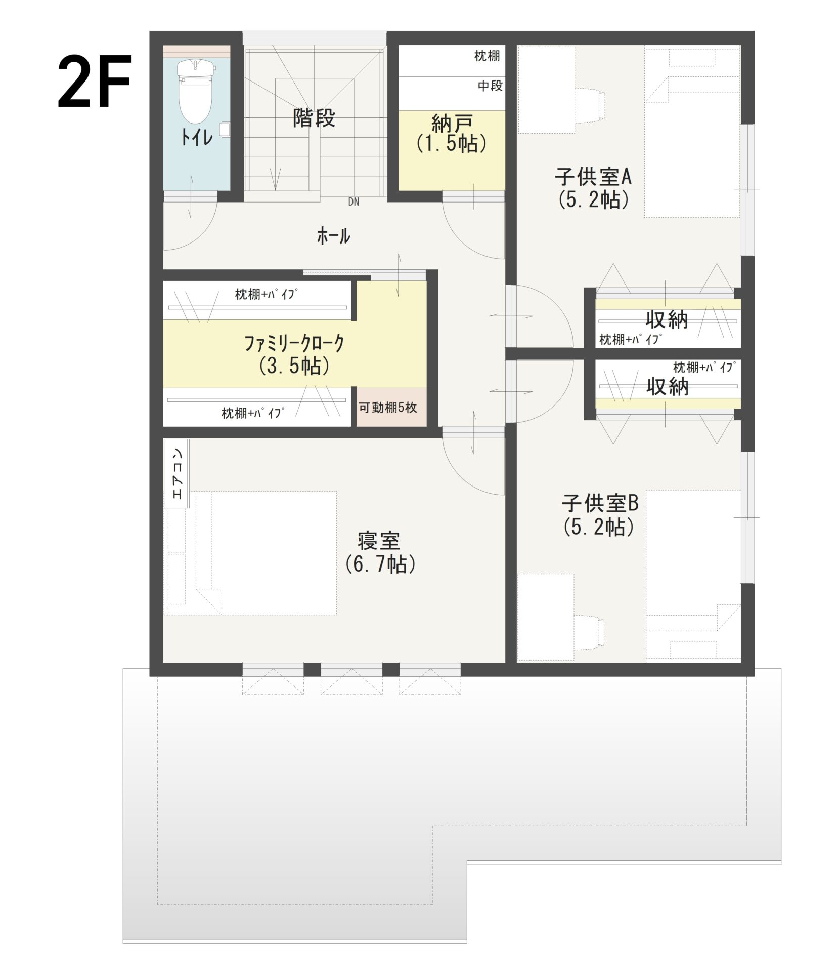 2階には大容量のファミリークロークと納戸を完備。1階・2階ともに収納を充実させることで、お部屋の中をいつでもスッキリと保てる、暮らしやすさ満載の一軒をぜひご体感ください。