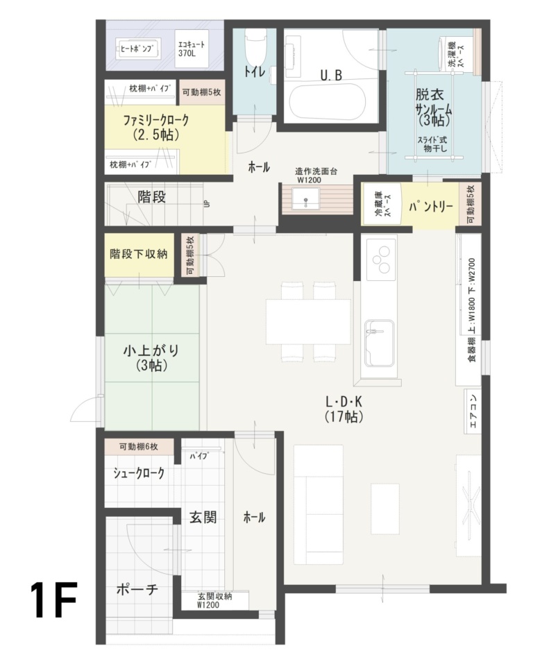 031階・2階のファミリークロークなど適材適所に設けた豊富な収納