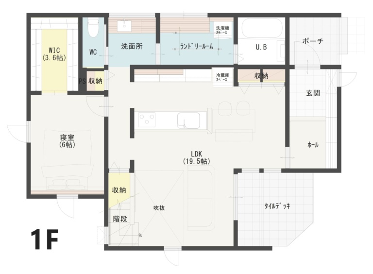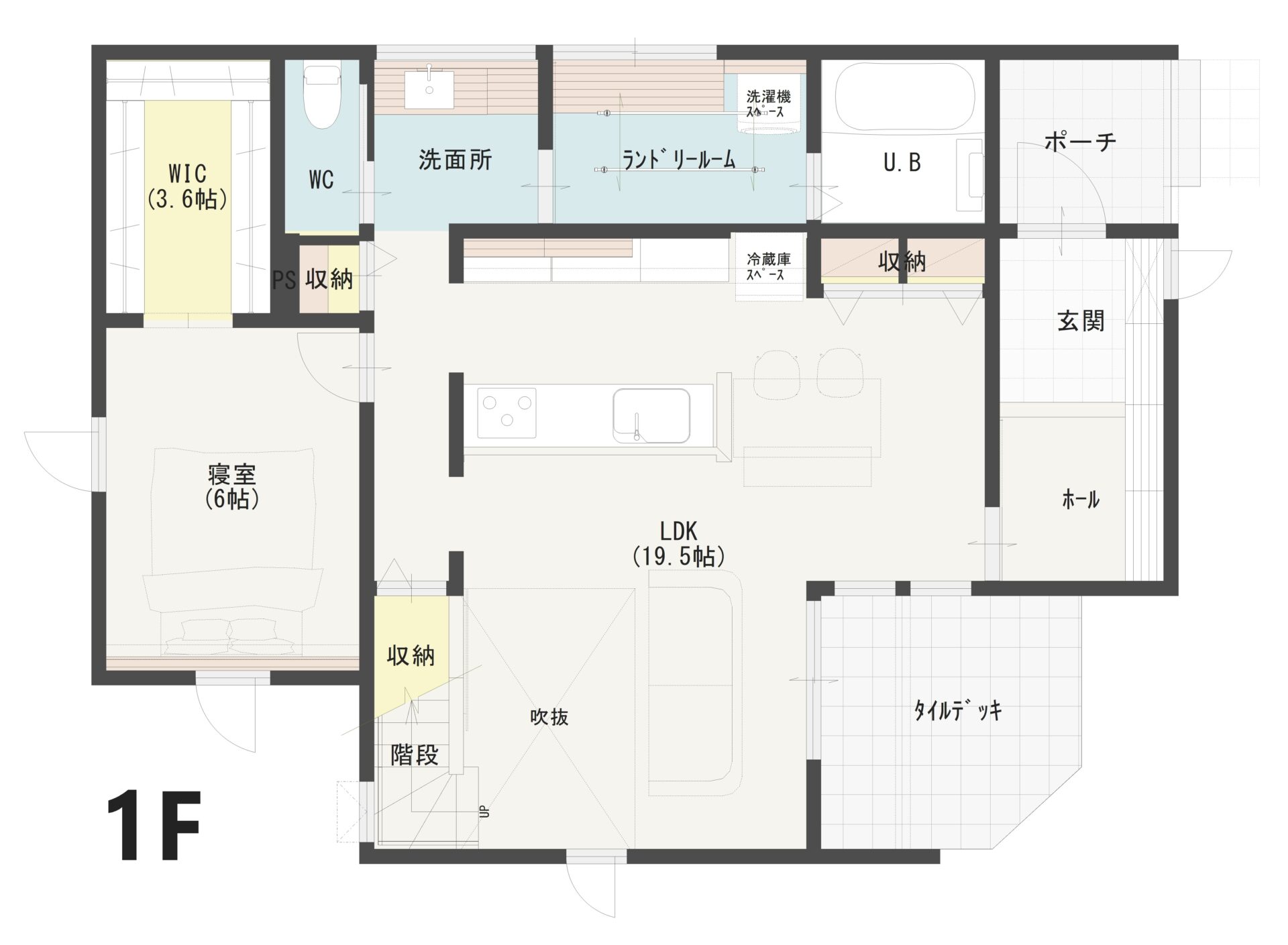 さらに、将来を見据えて寝室を1階に配置。キッチン腰壁のニッチ収納や、レンガ調のアクセントクロスなど、日々の家事を楽しくする細やかな工夫も必見です。