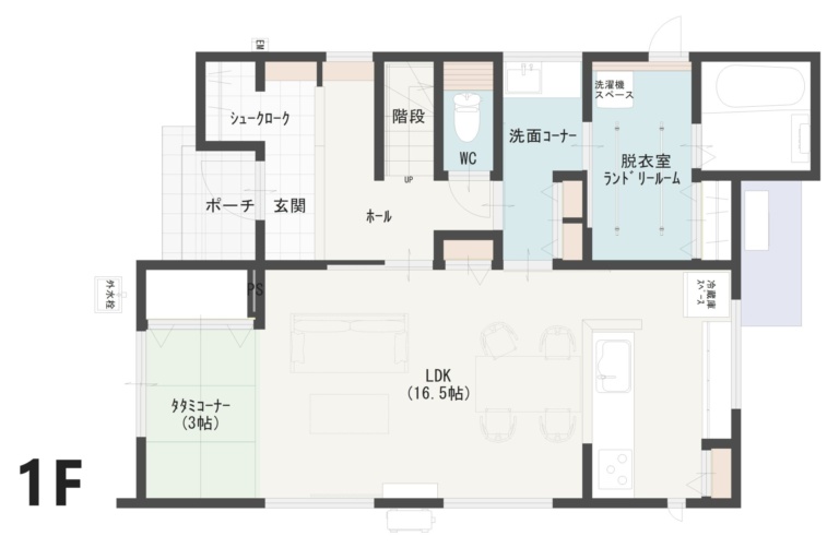 また、共働き世帯に嬉しい広々ランドリールームを完備。天候を気にせず「洗う・干す」が完結する設計💡