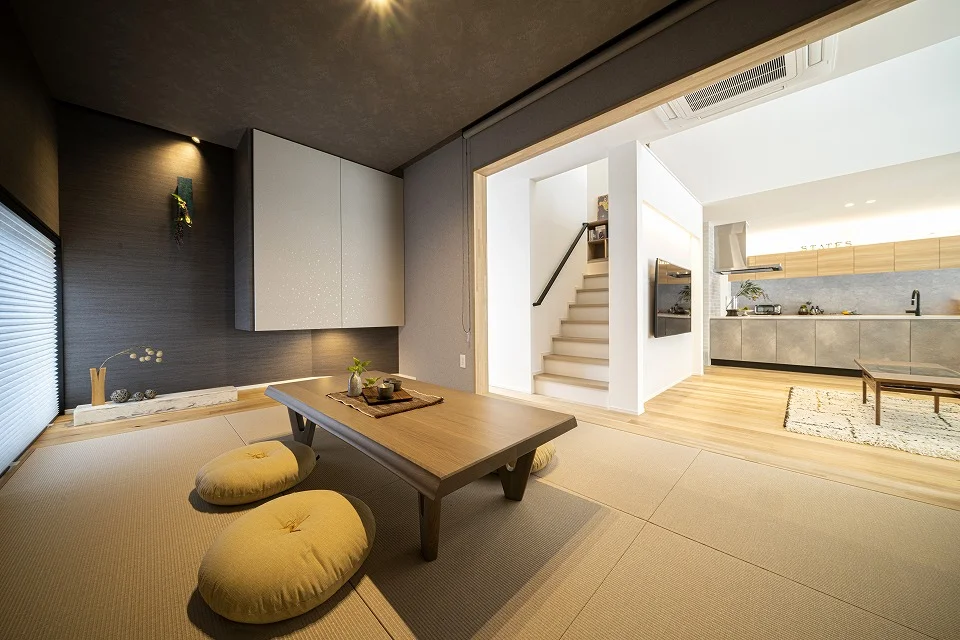 リビングと一体にも仕切ることもできる落ち着いた和室。