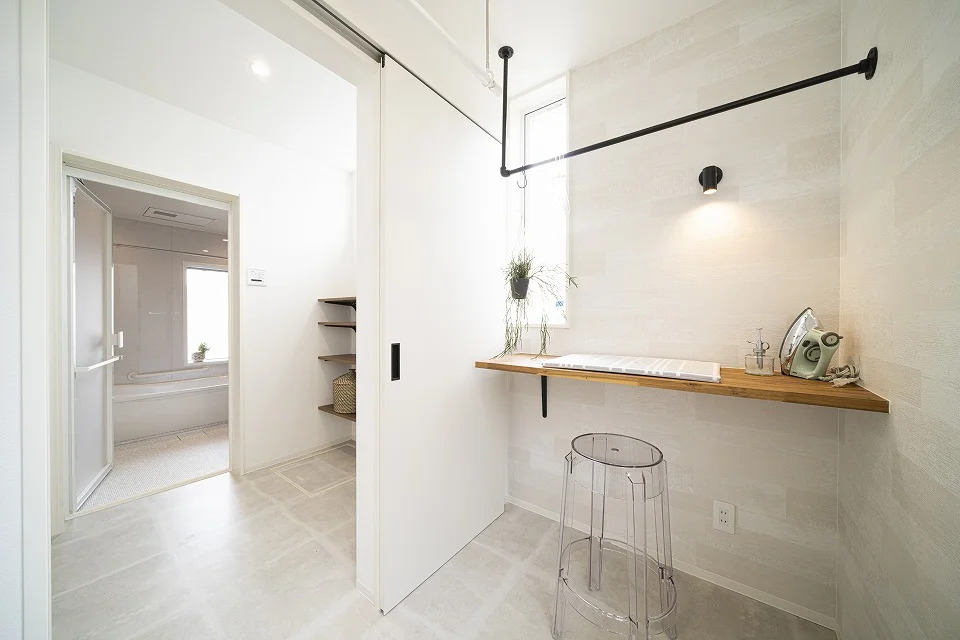 サンルームは脱衣室と分けられているため、家族が入浴中に入れない!なんてことはありません。広々とした設計でお洗濯が捗ります。