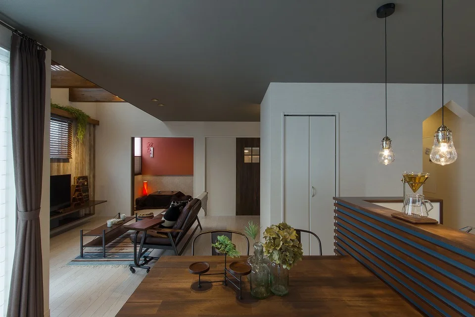 落ち着いた雰囲気のダイニングからリビングとモダンな和室(B棟)