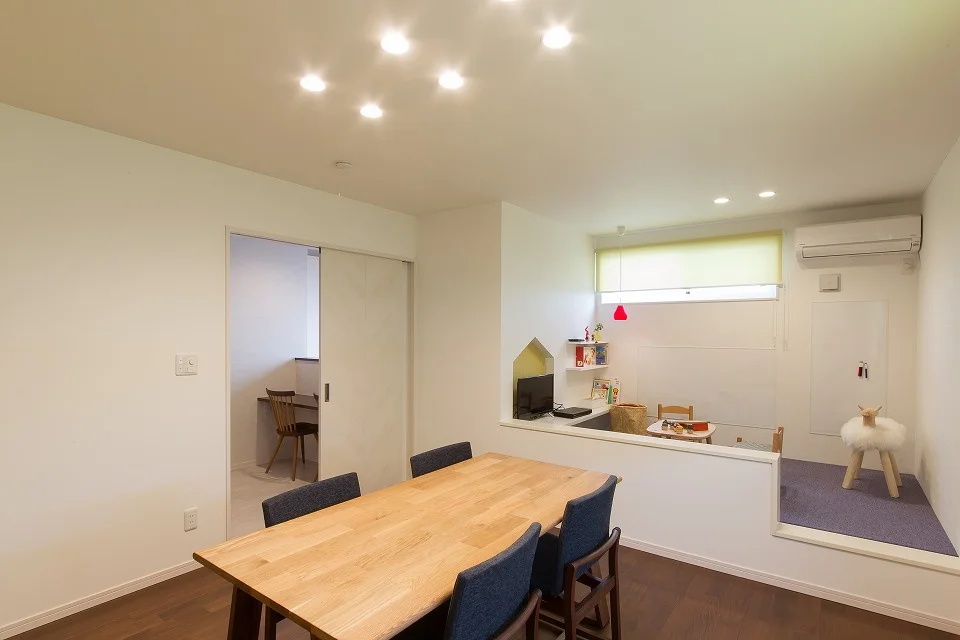 吹抜けのある間取りで、夏は涼しい空間、冬は床暖房で快適空間も体感できます。
