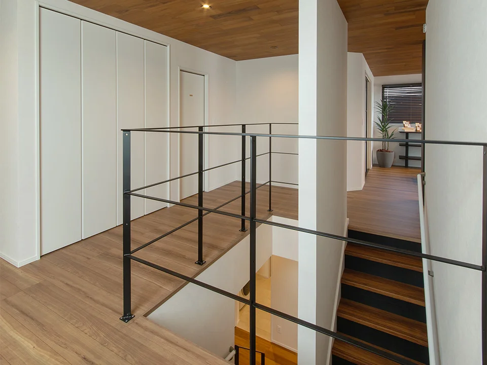 金属製の手すりを採用し、圧迫感を感じさせない空間に