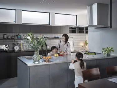 6.4帖のキッチンは広々、ダイニングとリビングを見渡せる