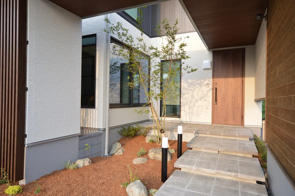 ちょっとした小庭がある玄関先のポーチ