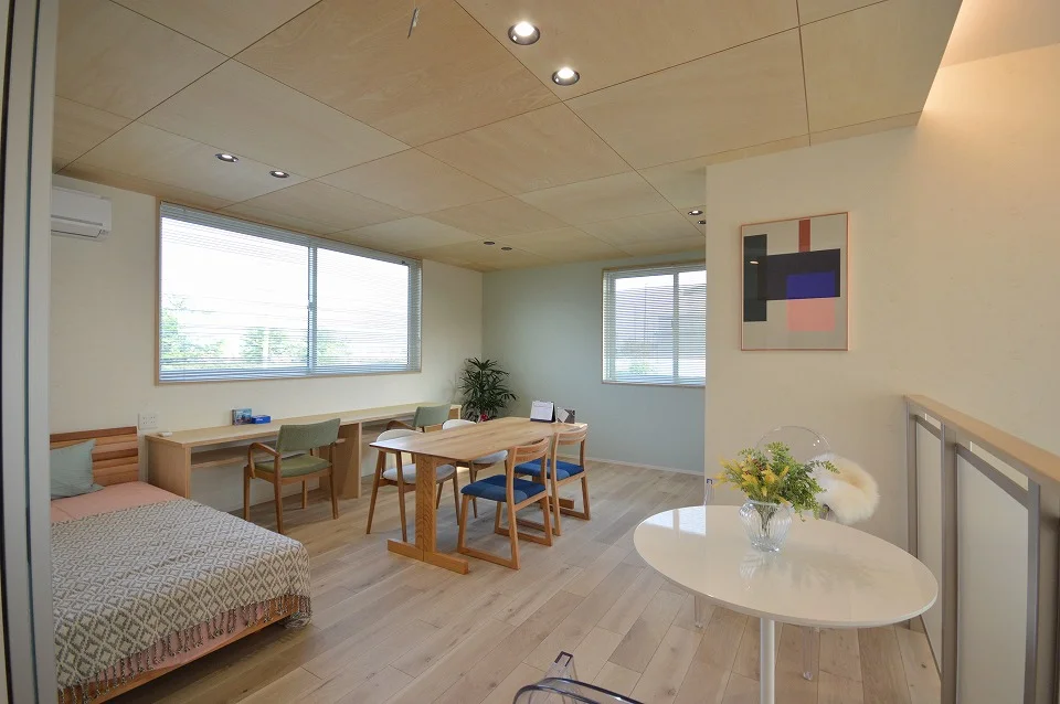 子供室は共同とすることで広々した空間を確保し、のびのびと過ごせるとともに、同じ空間で遊び、勉強し、ともに成長して行くことができるスペースになっています。