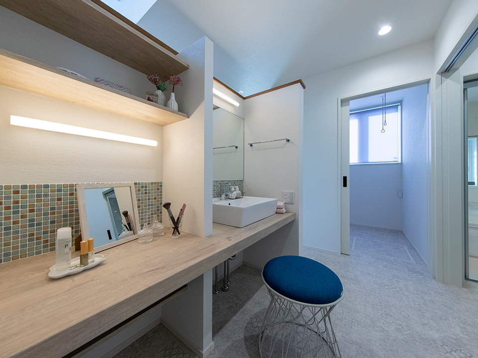 ■脱衣室兼サンルームでは洗う→干す→畳む→片付けるが一カ所で完結。