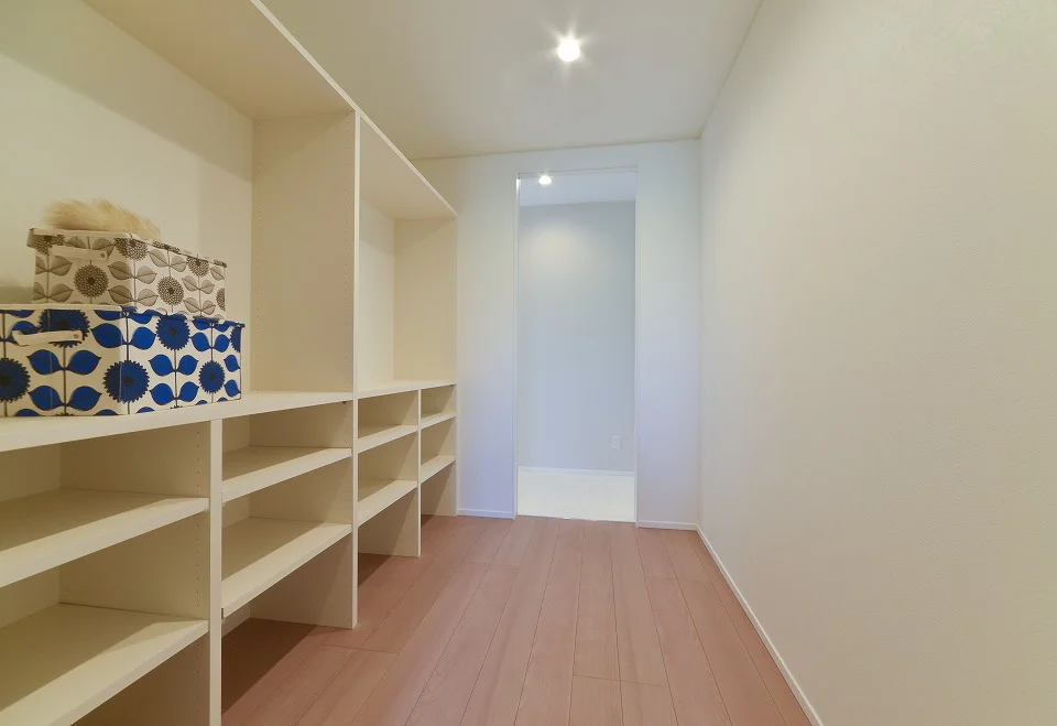 家族全員の荷物を整理しやすく、暮らしをスッキリさせるために、この家には十分な収納スペースが確保されています。特に注目したいのが、大容量のファミリークローゼットやシュークローク、小屋根裏収納です。服やアクセサリー、季節ごとのアイテムを一箇所にまとめて収納でき、毎日の服選びも楽しくなります。