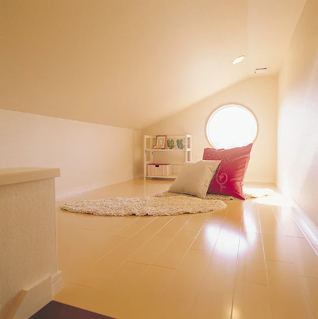 隠れ家風にアレンジした小屋裏でくつろぎのひととき。もちろん大容量の収納にもお使いいただけます。