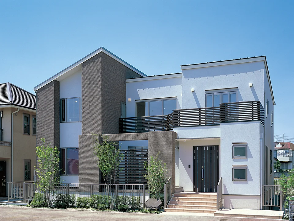 清潔感あふれるホワイトとシックなイメージを醸し出すブラウンの外壁を組み合わせ、モダンな雰囲気を演出。広々としたベランダと、コートテラスからは明るい日差しが差し込みます。