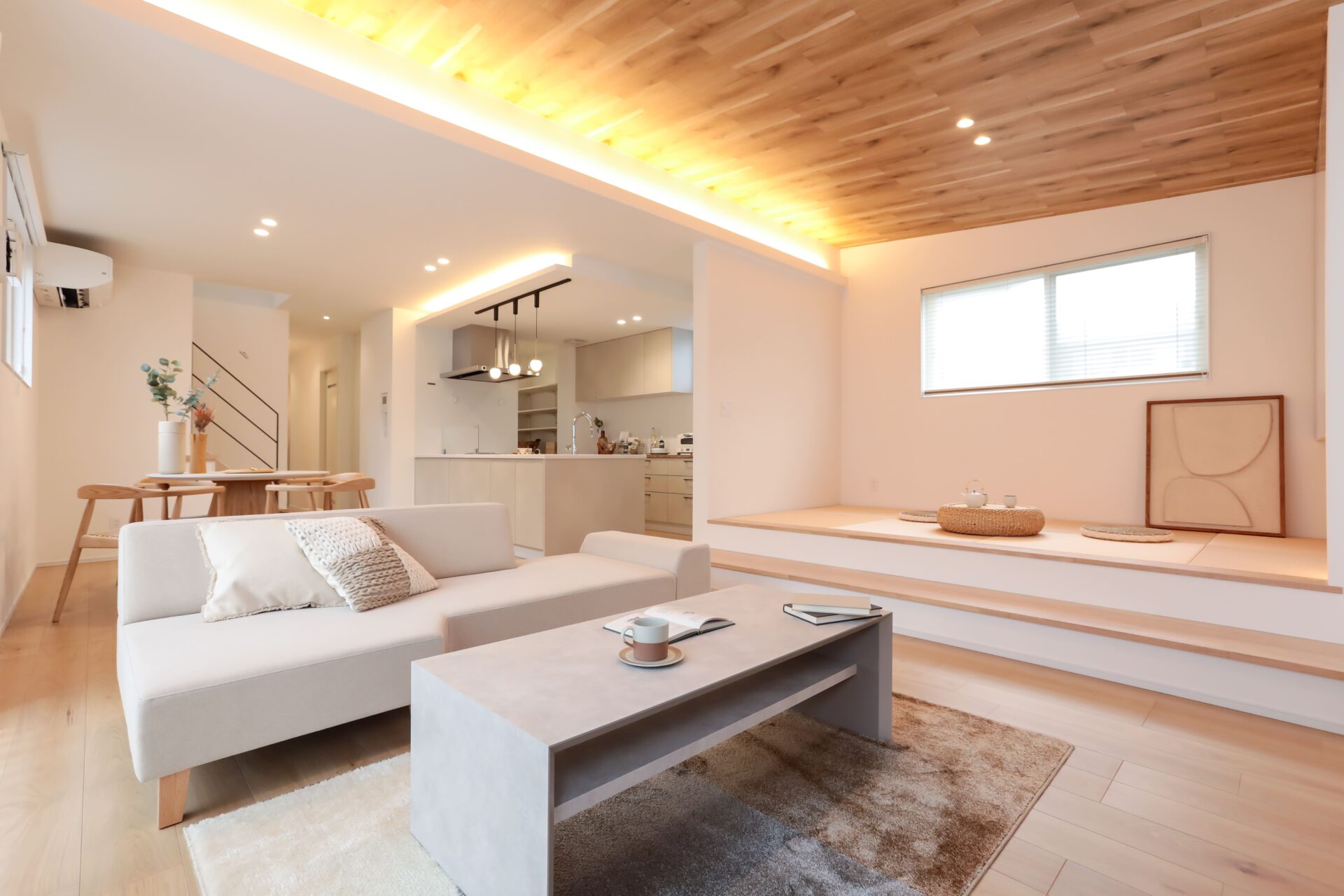 LDKに隣接した小上がりは、子どもの遊び場やお昼寝スペース、家事の合間のひと休みに。