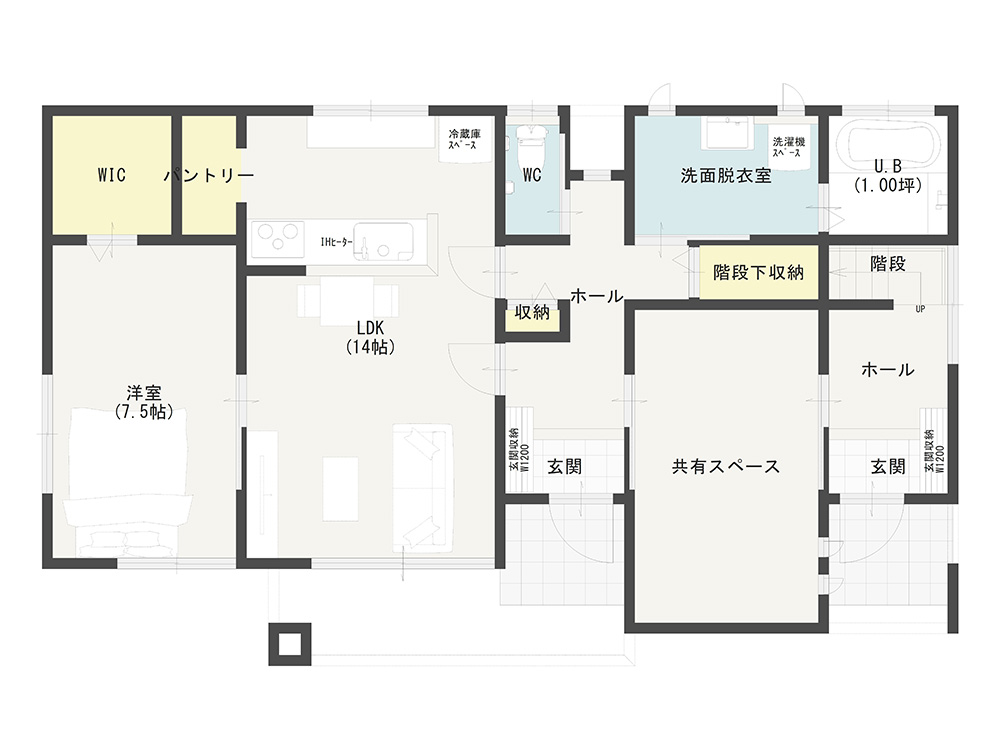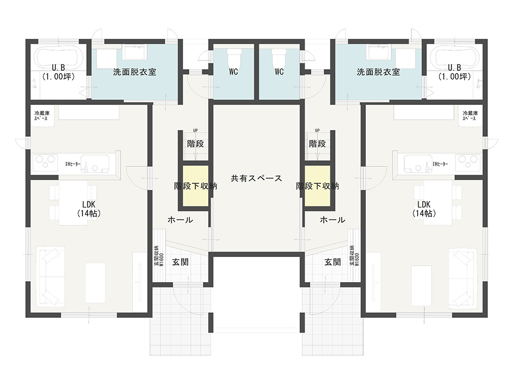 玄関やキッチン、お風呂など生活空間の全てが完全に独立したプランです。