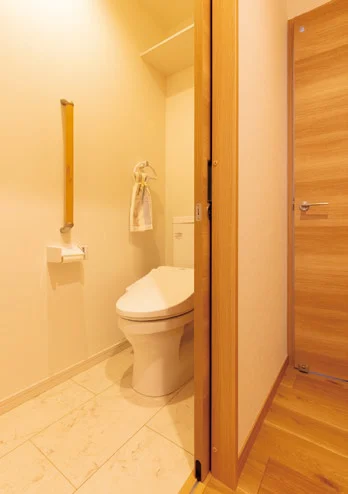 いたる所に収納スペースを設け、物が散らかる事なく、3世代でリラックスして過ごせます。大人数でも快適に過ごせるよう、洗面所やトイレも3つずつ設けました。ガルバリウム鋼板でクールに仕上げた外観に、片流れの屋根が気に入ってます!