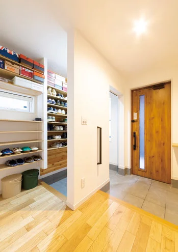 空間ごとに効率的な動線と収納を設けた、コンパクトながら広がりのある家