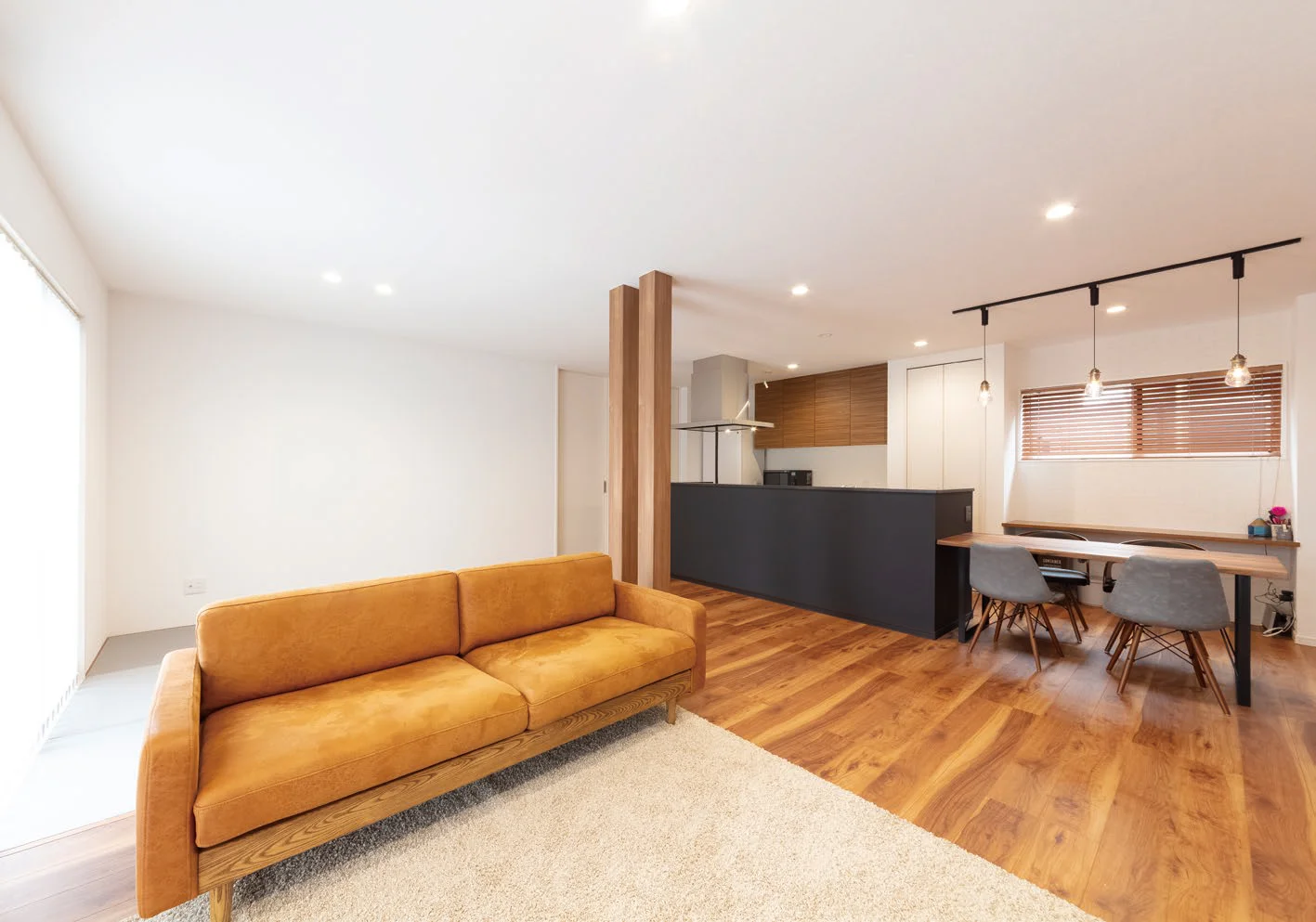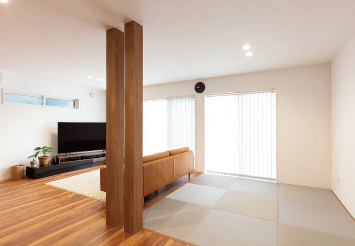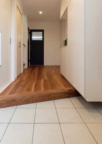 最もこだわったのが「広く見える」空間づくりです。家に入った時の第一印象を圧迫感がないようにするため、玄関ホールは奥行きをもたせ、LDKは大きな窓から外に視線が抜けるようにしたり、各所に空間を広く感じさせるように工夫しました。広いリビングが嬉しくて、家にいる時は常にまったりしちゃいます。