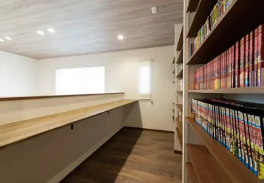 吹き抜けでつながる2階部分から、リビングの壁をホームシアターにして家族で映画を観たり、2人同時に立っても余裕の広々としたキッチンで、夫婦で料理を楽しんだりと、新しい住まいには家族の時間を充実させる空間をいろいろと用意しました。