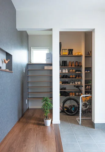 奥様生活感のない空間にしたくて、適材適所に収納スペースを設けているので、ものが散らからずいつでもすっきり!来客があってもササっと片付けられるので、気軽に友だちを呼べるんです。