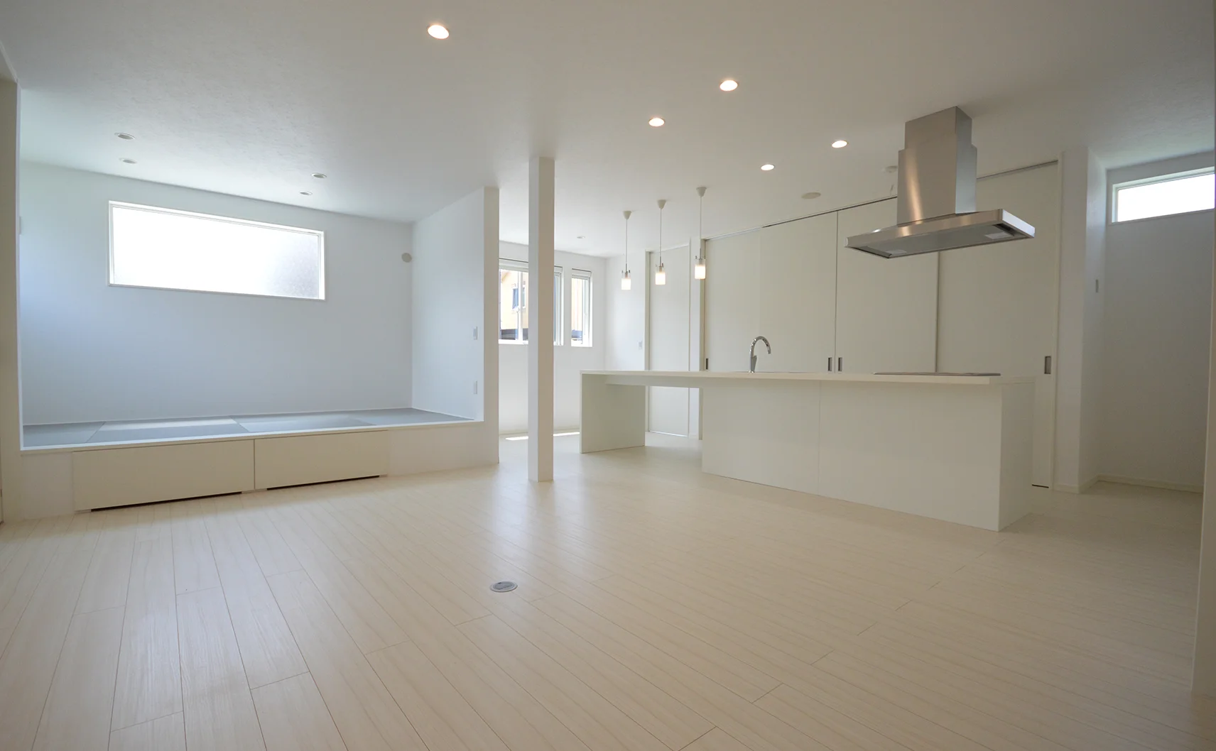 膨張色である白をメインとすることで、室内の明るさ・広さ感を演出する家