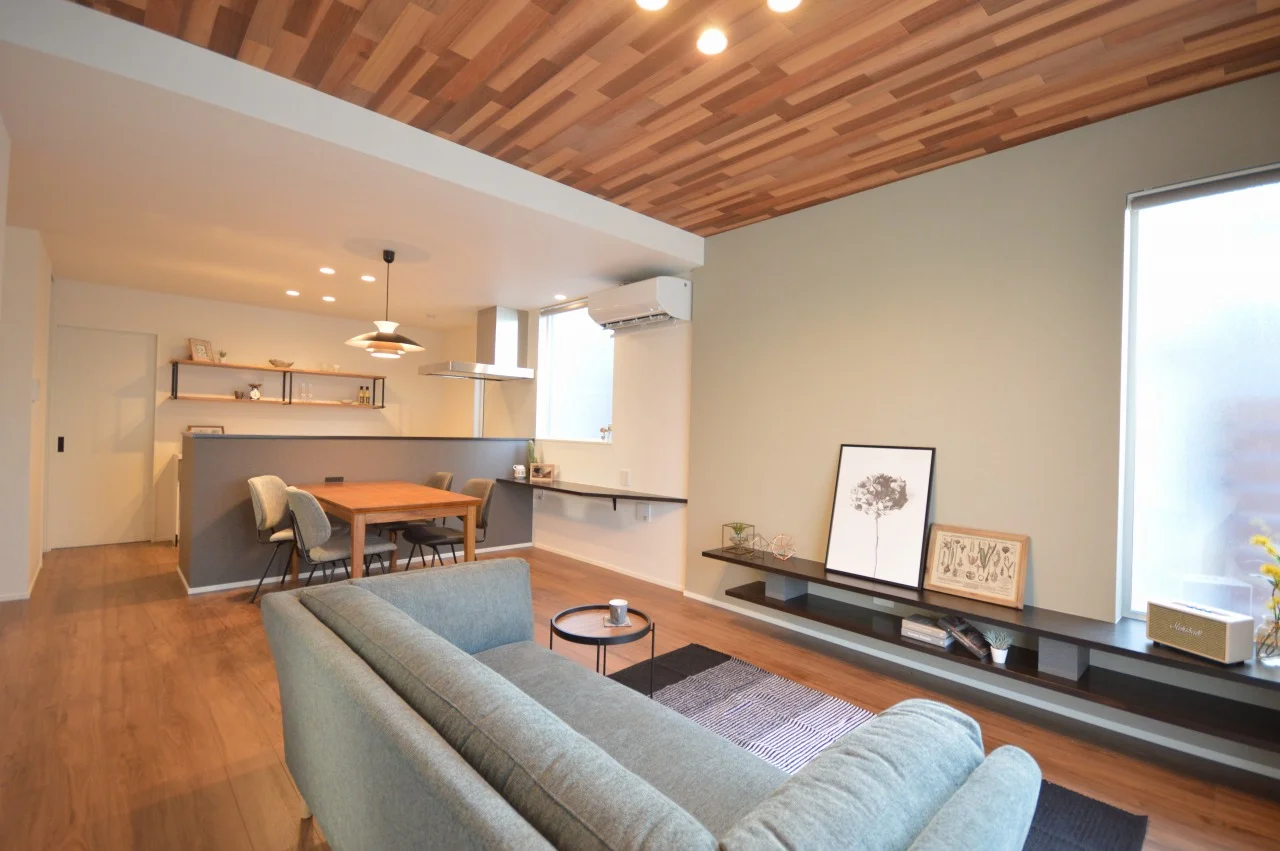 また、平屋のように1階に乗る屋根(下屋)の部分でリビングの天井高を通常取れない高さに設定。開放的な演出が可能に。